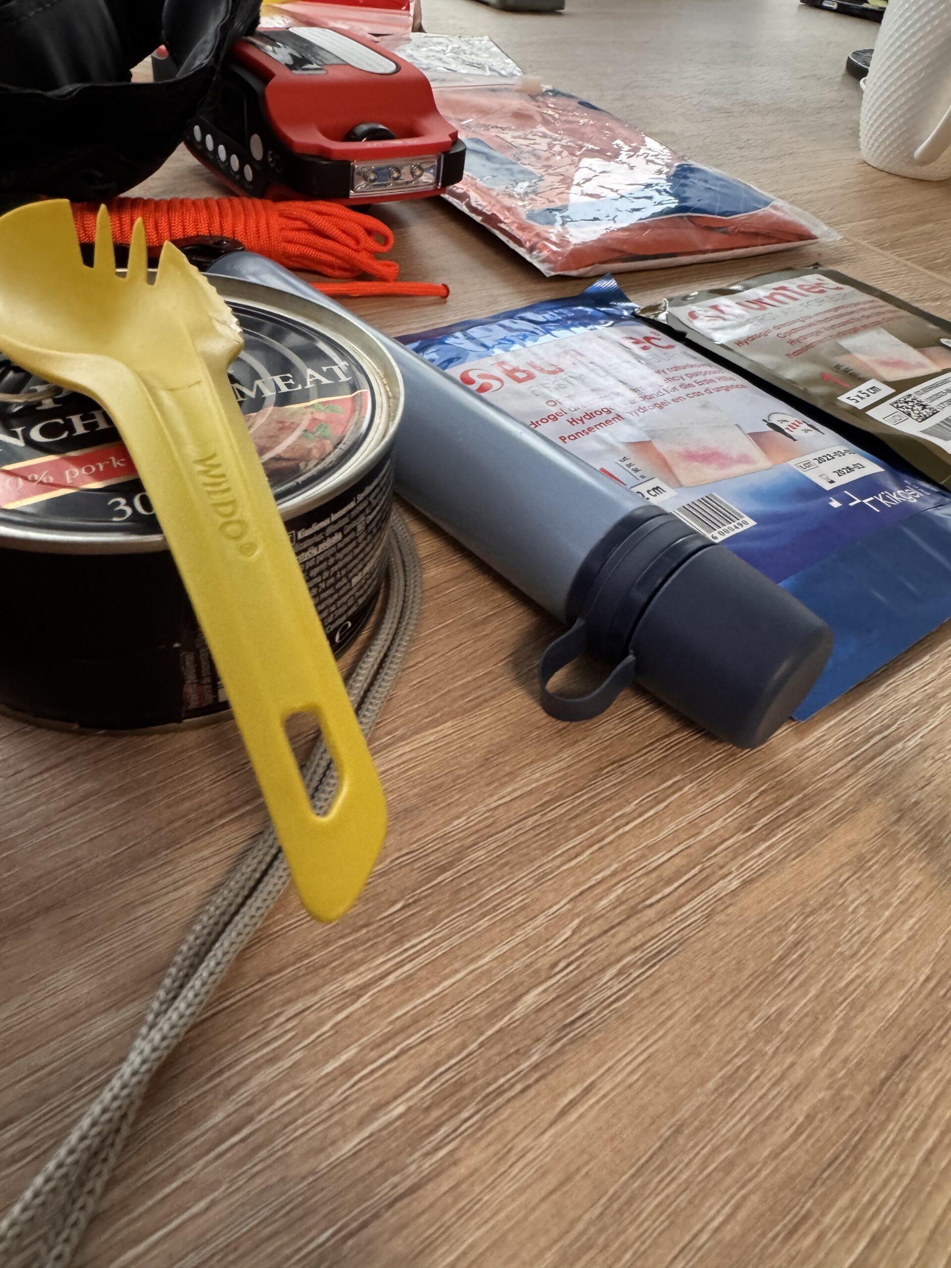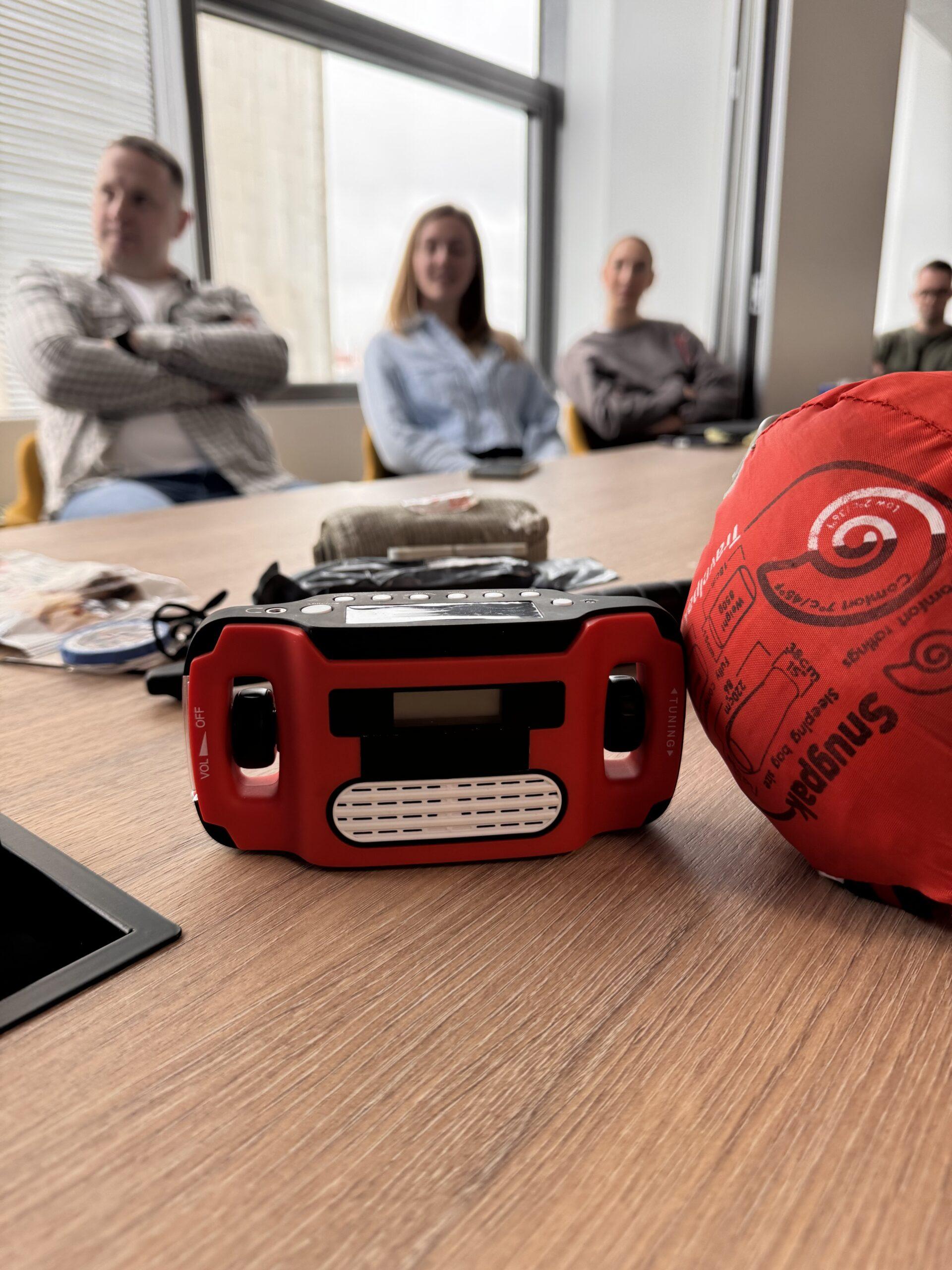 Mokymuose detaliai analizuojame, kokių atsargų (maisto, vandens, medicinos, ryšio priemonių) reikia išgyventi pirmąsias tris paras įvykus ekstremaliai situacijai ar evakuacijai.