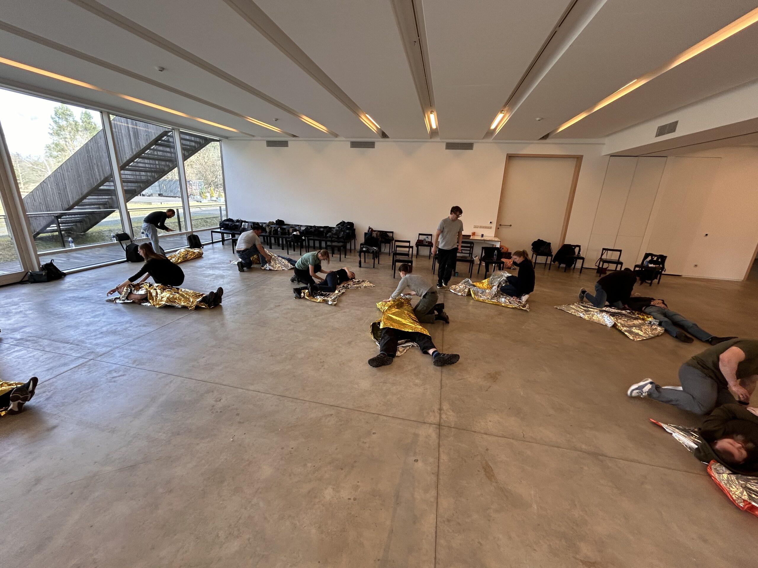 Teorinė dalis gali būti dėstoma nuotoliniu būdu, tačiau pirmoji pagalba reikalauja praktinių įgūdžių (gaivinimo manekenas, AED naudojimas), todėl praktiniai užsiėmimai vyksta gyvai su instruktoriais.